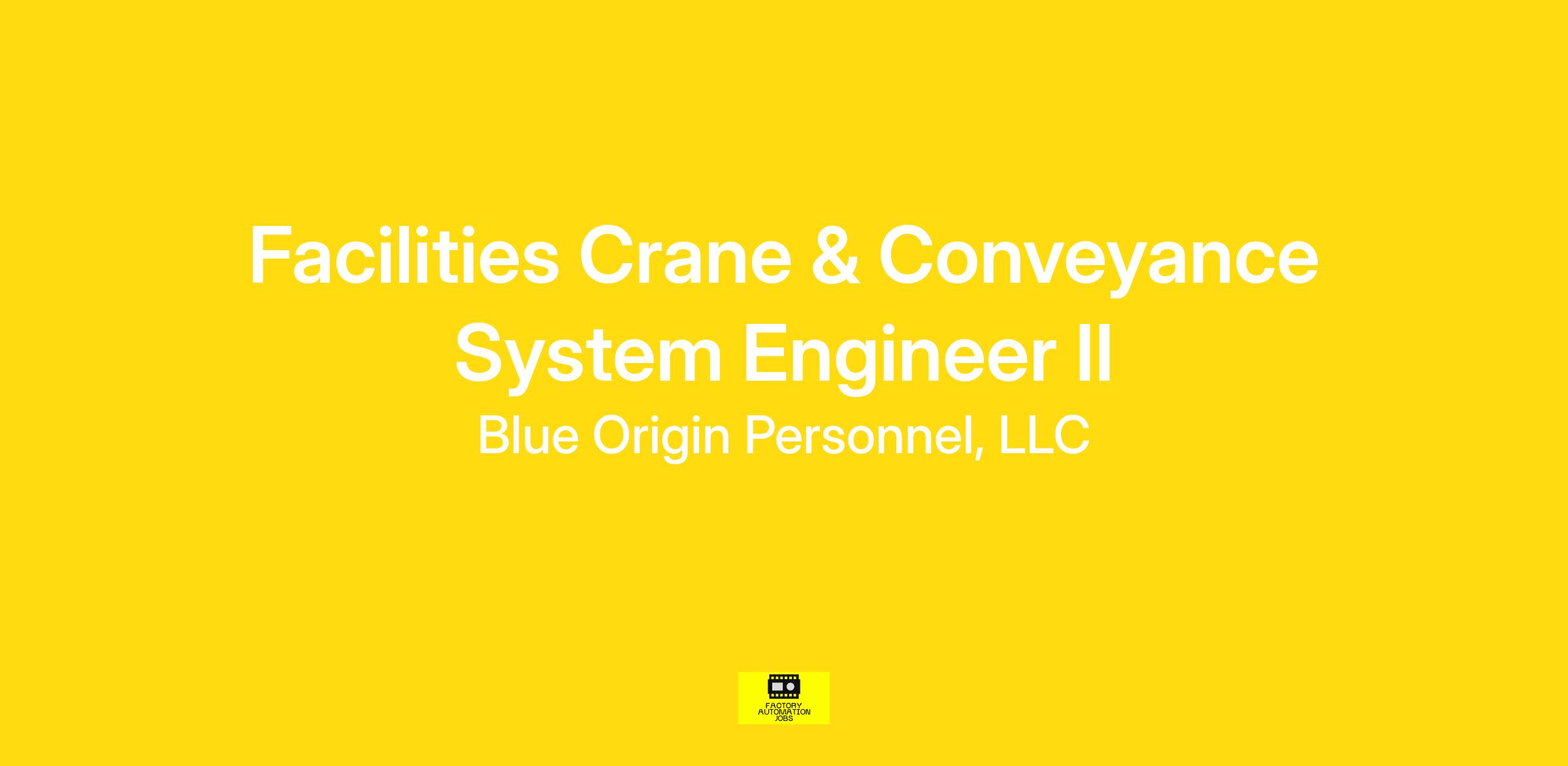 This role is part of Blue Origin corporate functions, providing centralized support across Blue Origin business unit teams, functions, and locations.We are seeking a skilled Crane and Conveyance System Engineer to join our team. The ideal candidate will have extensive knowledge of crane system design, including control systems, and will be responsible for the development, implementation, and maintenance of crane and conveyance systems.