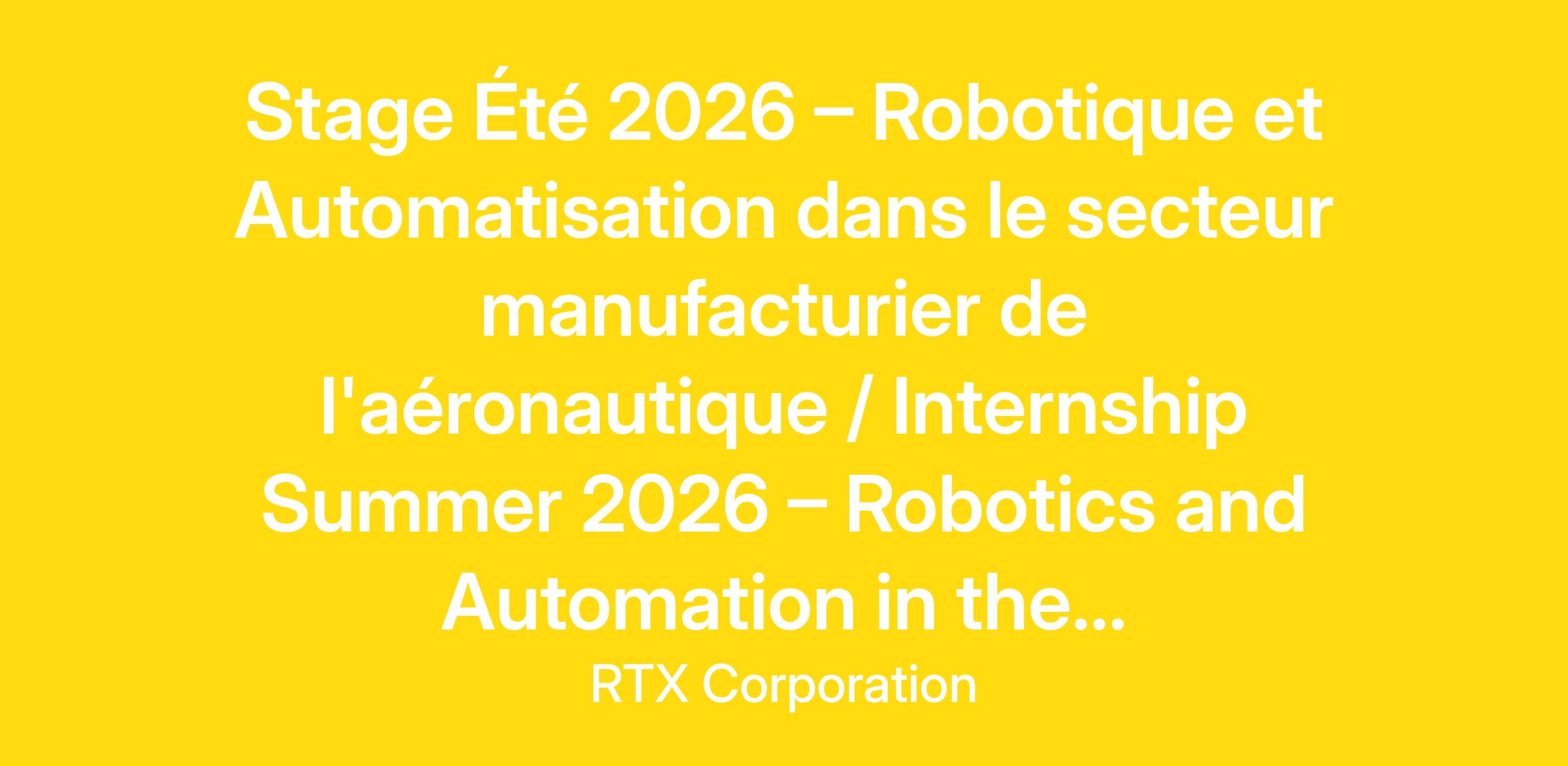 l'aéronautique / Internship Summer 2026 – Robotics and Automation in the...