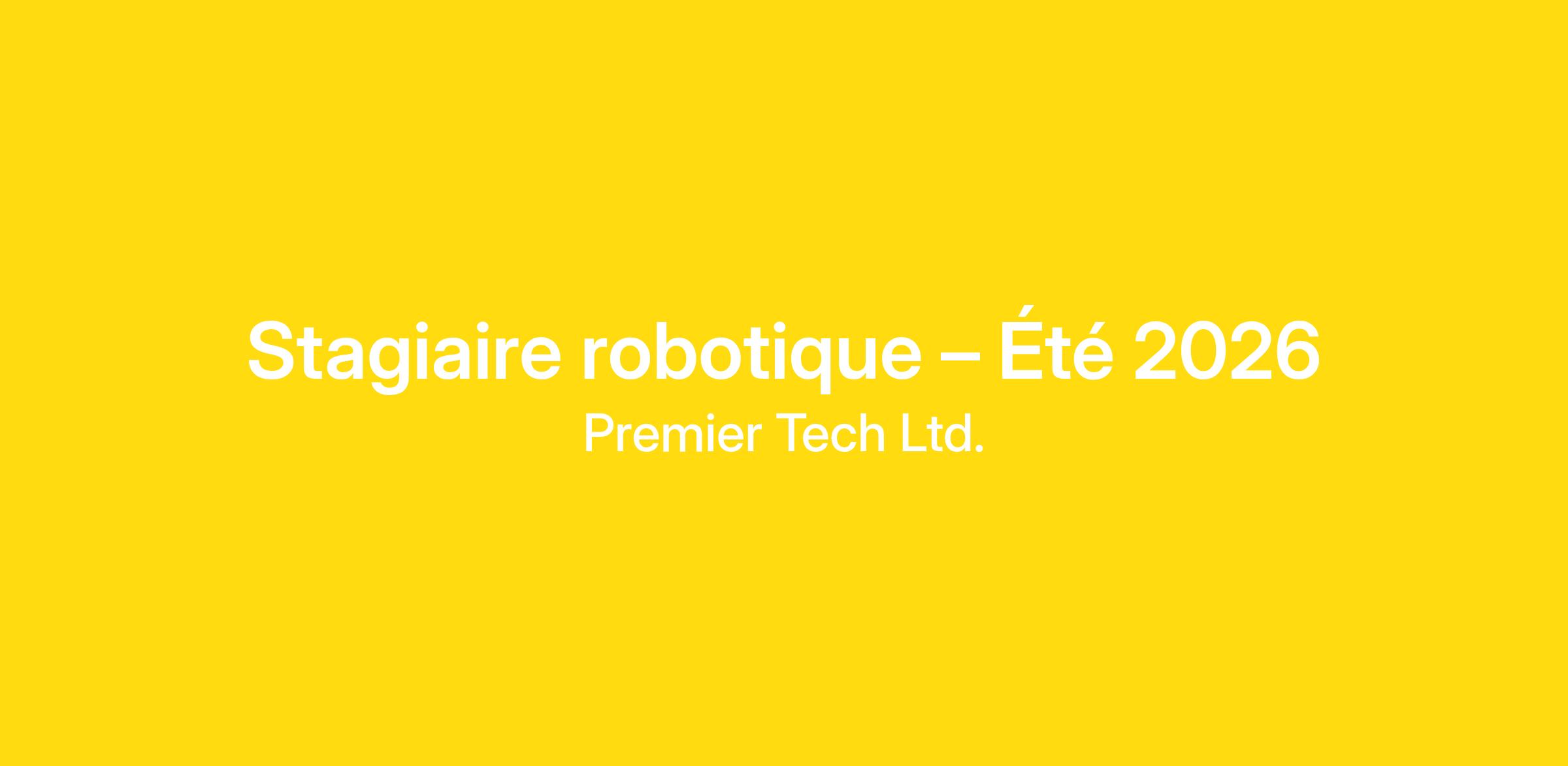 Premier Tech Ltd. (Québec QC): ...composantes de produits existants et diminuer les coûts, augmenter l’efficacité et assurer une performance optimale à long terme Compétences requises. Baccalauréat en génie de logiciel, en génie mécanique ou tout autre diplôme connexe. Bonnes connaissances en programmation dont le langage Python – un atout. Bonne capacité d’autonomie. Sens de l ’organisation. Esprit d’équipe. Rigueur Ces mots suscitent-ils ton intérêt? Robotique, programmation, développement, software, proof of concept, PLC...