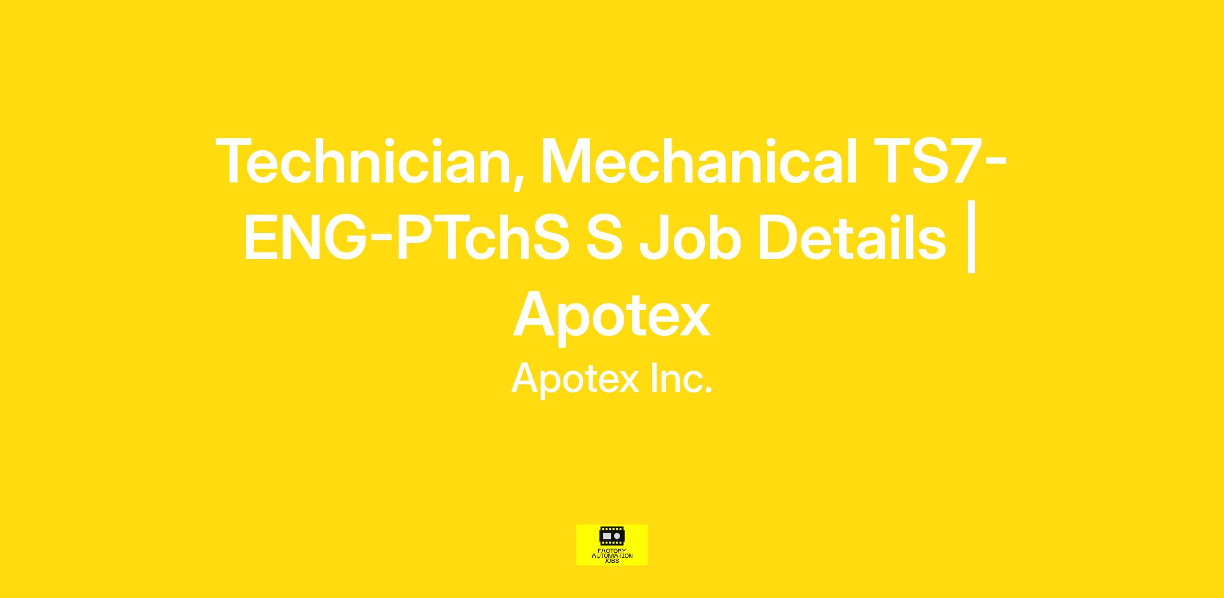 Technician, Mechanical TS7-ENG-PTchS S Job Details | Apotex